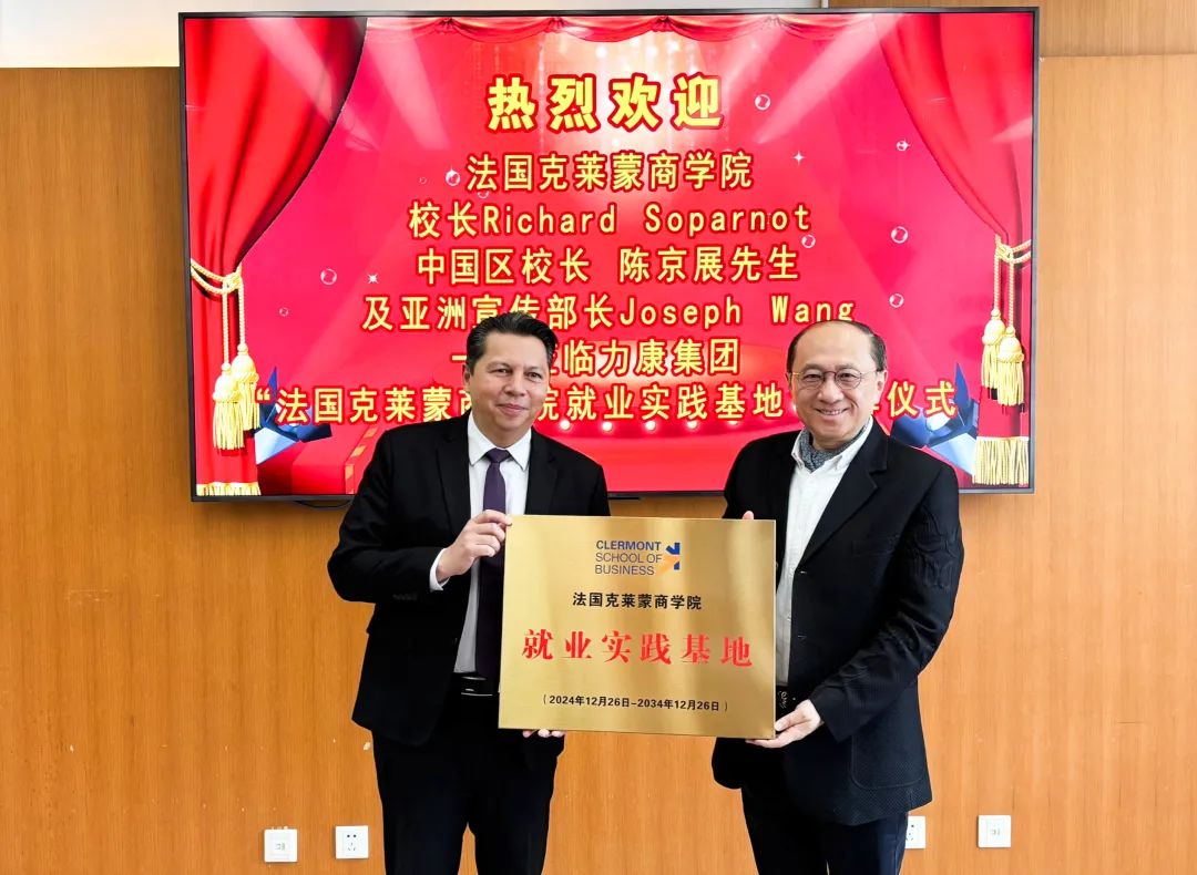 在深入了解力康集团后,“克莱蒙高等商学院就业实践基地”授牌仪式正式举行。这一合作意义深远,对于克莱蒙高等商学院而言,力康集团丰富的行业实践资源将为学生提供宝贵的实习与就业机会,助力学生将理论知识应用于实际工作中,提升就业竞争力;而力康集团也将借此吸引更多优秀人才,为企业创新发展注入活力。