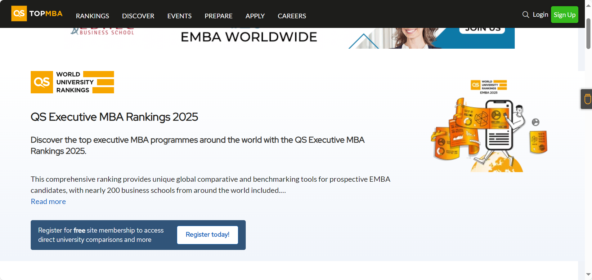 近日,国际高等教育权威机构QS (Quacquarelli Symonds) 正式发布了2025年全球EMBA排名。