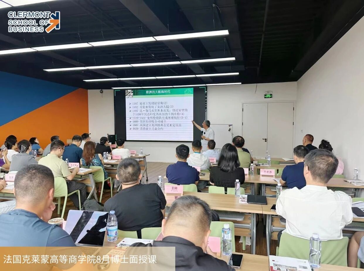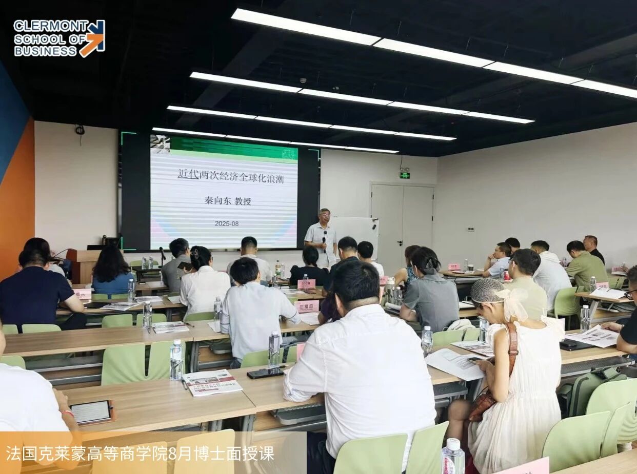 2025年8月23日-24日,由上海交通大学秦教授主讲的《全球化背景下的国际商务与市场营销研究》DBA课程,于法国克莱蒙高等商学院上海分校成功开课。