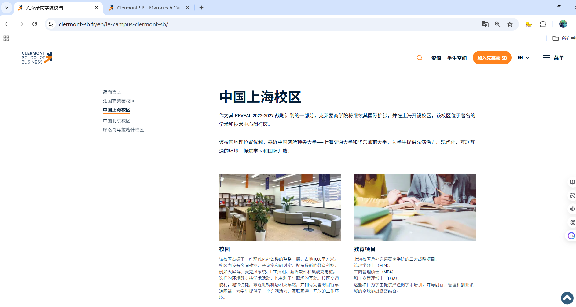 为确保全球学生、合作伙伴及公众能够获取最权威、最全面的信息,法国克莱蒙高等商学院已在官方网站(网址:https://www.clermont-sb.fr/en/le-campus-clermont-sb/)特别设立了“上海分校”专属板块。该板块不仅是信息的集散地,更是我们透明化运营和全球化战略的窗口。