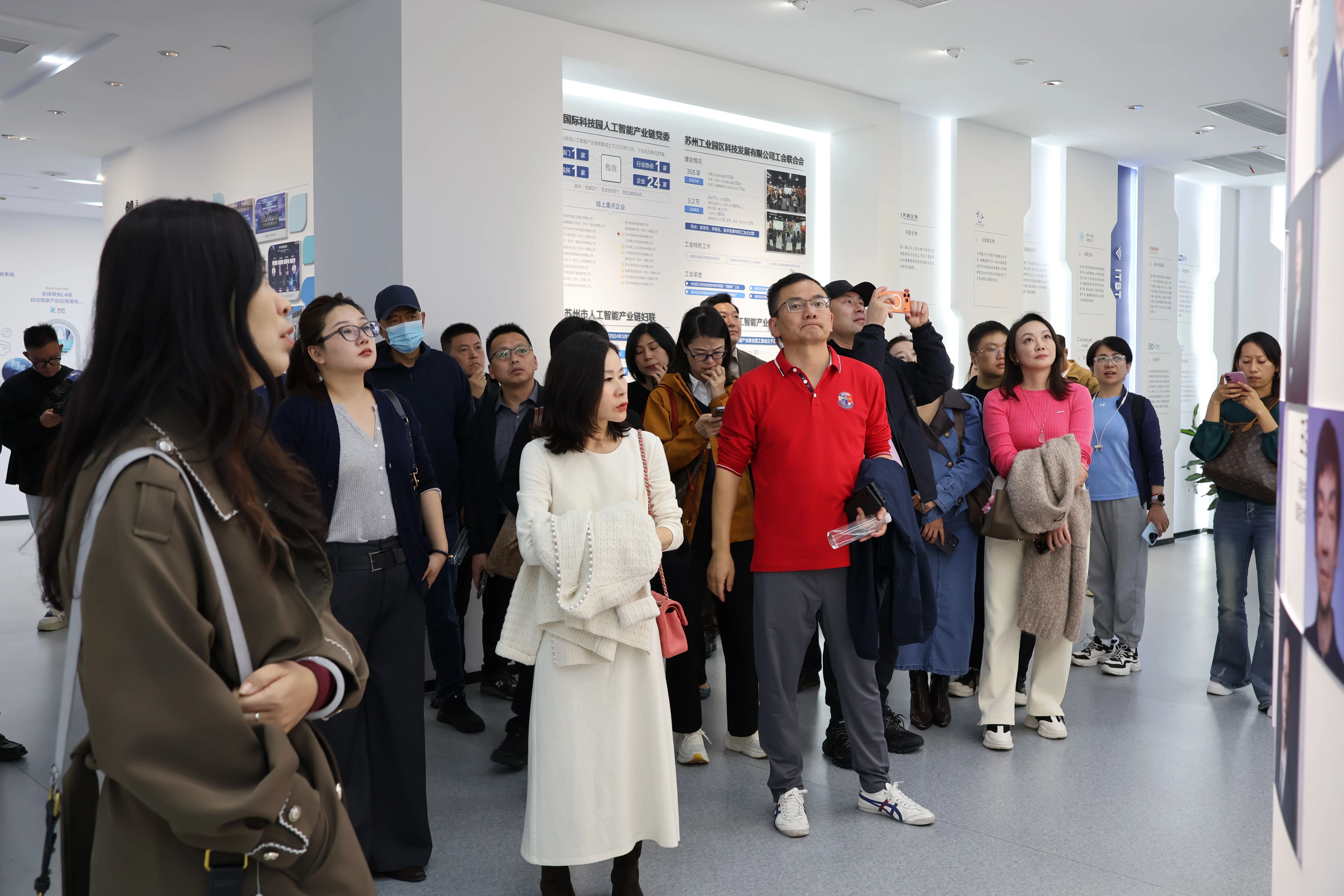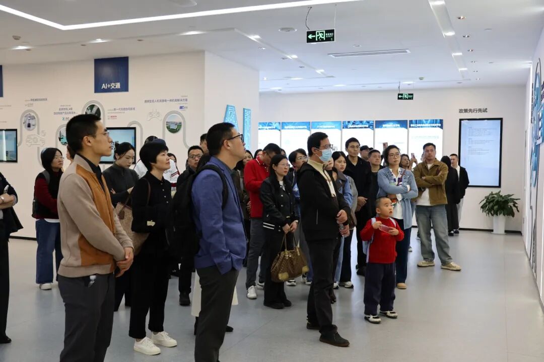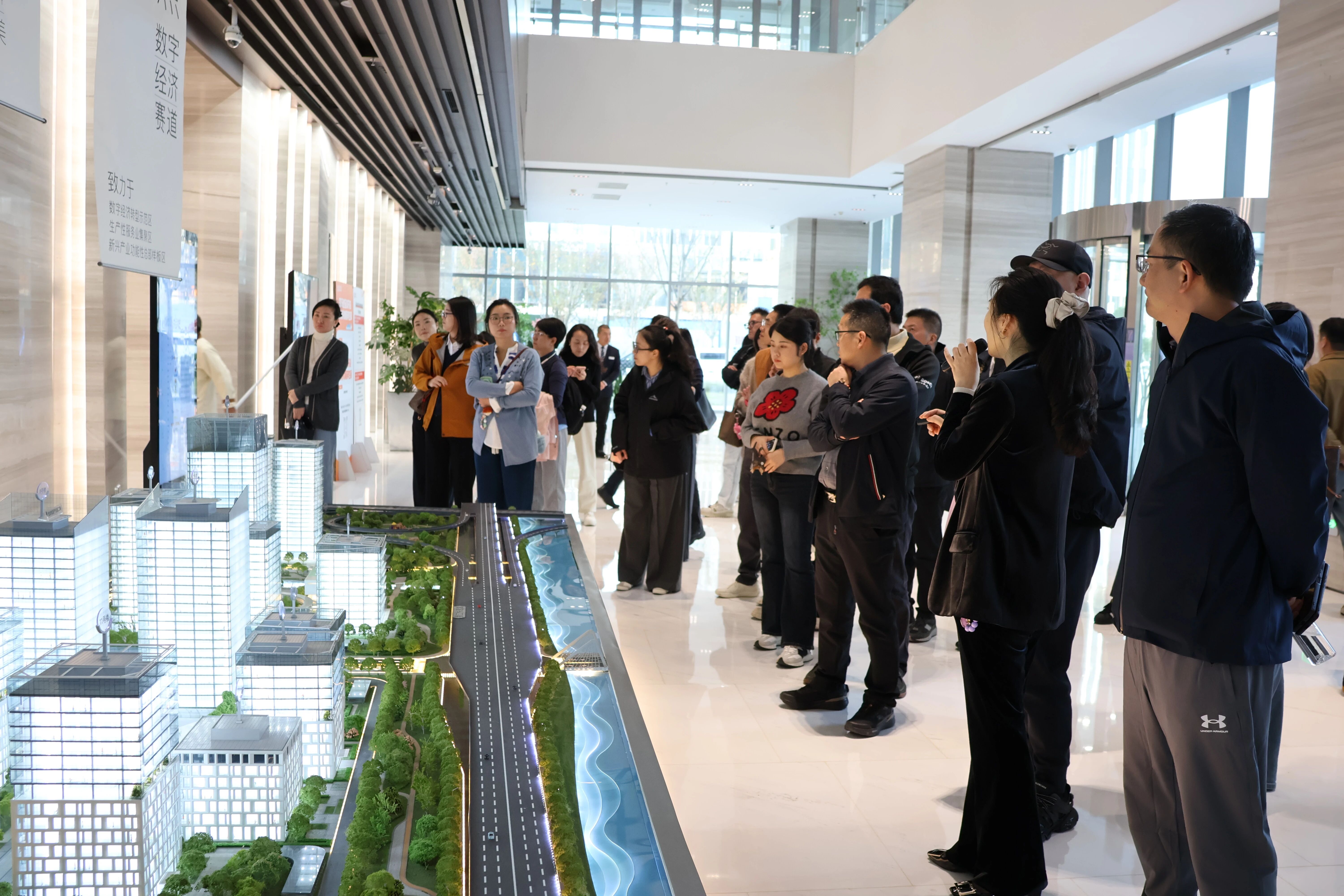 在园区讲解员的引导下,同学们深入其技术展厅,近距离观摩了园区内企业在人工智能、集成电路、大数据和工业互联网等领域的最新应用成果。